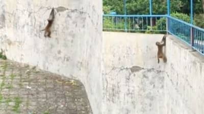 (monkey climbing on wall funny video went viral on social media)