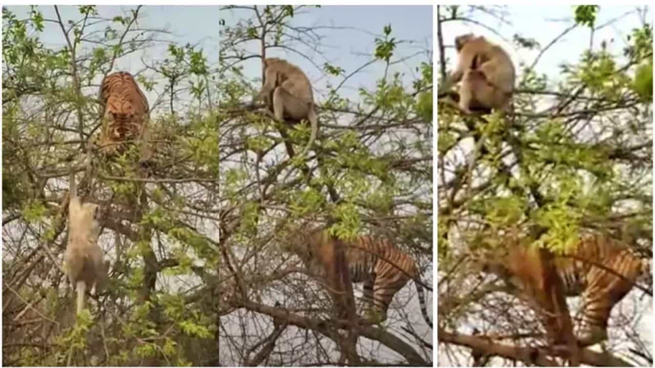 व्हायरल झालेल्या या व्हिडिओमध्ये वाघ झाडावर चढून माकडाला मारण्याचा प्रयत्न करत असल्याचे स्पष्टपणे दिसत आहे. मात्र माकडाने आपल्या धूर्तपणाने वाघाचा जणू पराभवच केला. जेव्हा वाघ पुढे येतो तेव्हा माकड एक अद्भुत युक्ती अवलंबते आणि मग वाघ अक्षरश: माघार घेतो.