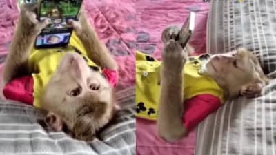 मुंबई: प्राण्यांचे अनेक व्हिडीओ व्हायरल होतात. हे व्हिडीओ खूप गोंडस असतात. व्हिडीओमध्ये अनेकदा प्राण्यांचा निरागसपणा दिसून येतो. लहान मुलेच काय प्राणी सुद्धा माणसाला कॉपी करतात. जे माणूस करणारा ते ते प्राणी करणार. याचं उत्तम उदाहरण म्हणजे कुत्रा, कुत्रा तर माणसाच्या सोबत राहून राहून माणसाप्रमाणेच वागायला लागलाय. हा व्हिडीओ जरा वेगळा आहे. या व्हिडीओमध्ये एक माकड आहे. हे माकड अगदी माणसाप्रमाणेच फोन खेळतंय. हा व्हिडीओ बघून तुम्हाला कुणीतरी नक्कीच आठवेल.