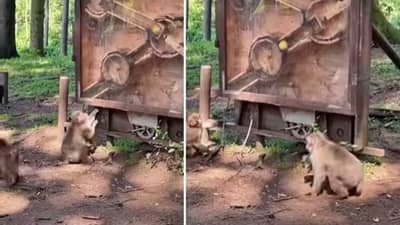 व्हायरल झालेल्या व्हिडिओ क्लिपमध्ये जंगलात लोखंडी दरवाजासारखं पझल गेम आहे. त्याचवेळी त्याच्या आजूबाजूला अनेक माकडं दिसतात. या लोखंडी दरवाजावर एक माकड काहीतरी करताना दिसत आहे. पुढच्याच क्षणी तुम्हाला समजेल की दारात कोड्यासारखं काहीतरी आहे. ज्यातून चेंडू काढावा लागतो. व्हिडिओमध्ये, माकड ज्या पद्धतीनं बॉल सहजपणे सोडवू शकतो आणि बाहेर काढू शकतो, ते पाहताना तुम्हाला खूप मजेदार वाटेल. चला तर मग पाहू या, हा मजेदार व्हिडिओ…