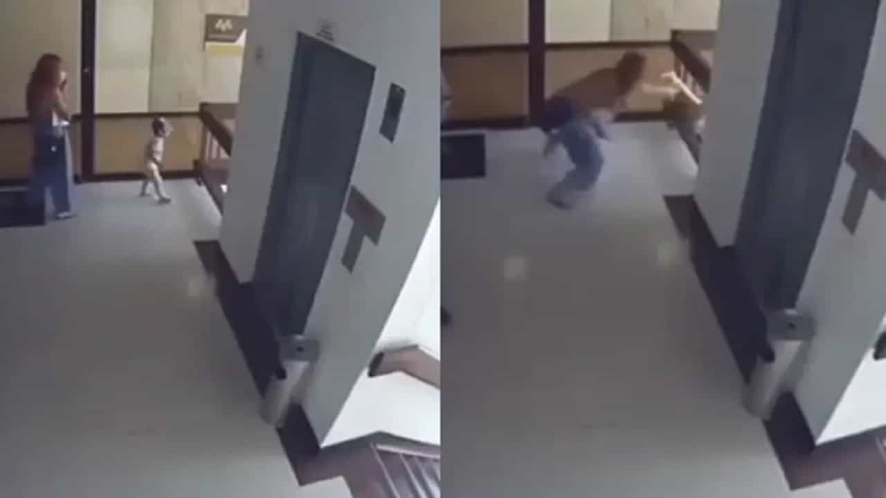 व्हिडिओमध्ये एक पुरुष आणि एक महिला आपल्या मुलासह लिफ्टमधून बाहेर पडताना दिसत आहे. यानंतर ती महिला कोपऱ्यात जाऊन उभी राहते. मग ते मूल पायऱ्यांकडे जाऊ लागतं. मात्र, आपले मूल कुठे जात आहे, याची काळजी महिलेला असते. तितक्यात ते लेकरू खाली वाकून बघण्याच्या नादामध्ये त्याचा तोल जातो. हेच ती आई पाहते आणि ती सुपर माॅम होऊन आपल्या लेकराला धरते.