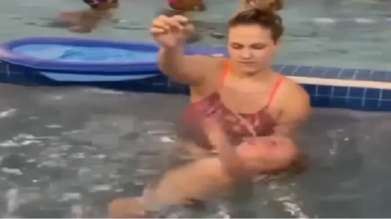 (Mother giving swimming lessons to kid video goes viral)