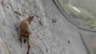 These mountain goats are climbing the vertical walls of a dam in Italy to get the most essential salts for their survival…