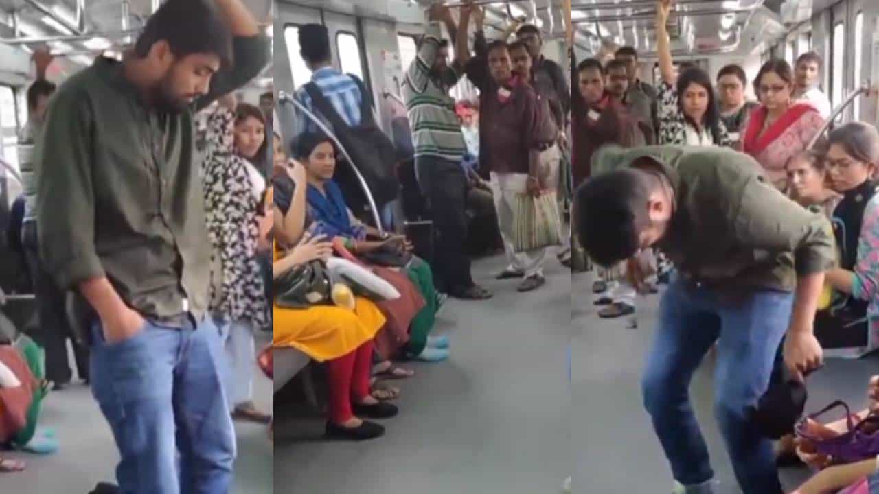 बघताय ना…या निन्जा टेक्निकमुळे त्या व्यक्तीला मेट्रोमध्ये आरामदायी जागा मिळाली आणि एकाच वेळी एक जागाच नव्हे तर अनेक जागा रिकाम्या झाल्या.