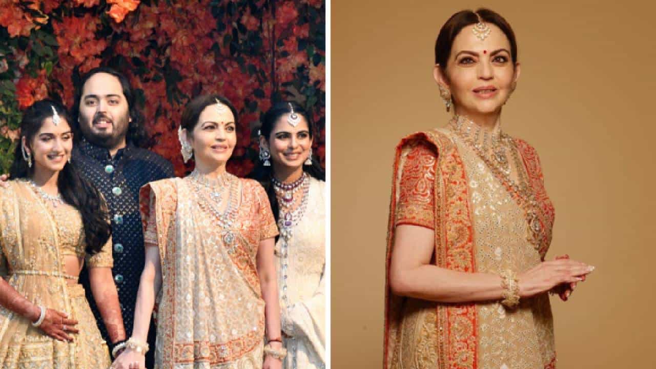 आपल्या धाकट्या मुलाच्या आयुष्यातील या खास प्रसंगी नीता अंबानी खूपच सुंदर दिसत होत्या. त्याने बेज गोल्डन कॅलेंडर घाघरा परिधान केला होता. चिकनकरी भरतकामाने ते सजवण्यात आले होते. पटोला सिल्क आणि क्रिस्टल्स आणि सिक्विन वर्क मुळे हा मॅच परफेक्ट होता.