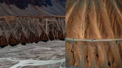 या चित्रांमध्ये ड्रोन दृश्यांनी खरोखरच सुंदर दृश्यं टिपली आहेत. ते खडकाळ प्रदेश, निळे आकाश आणि वळणदार रस्ते दर्शवितात.