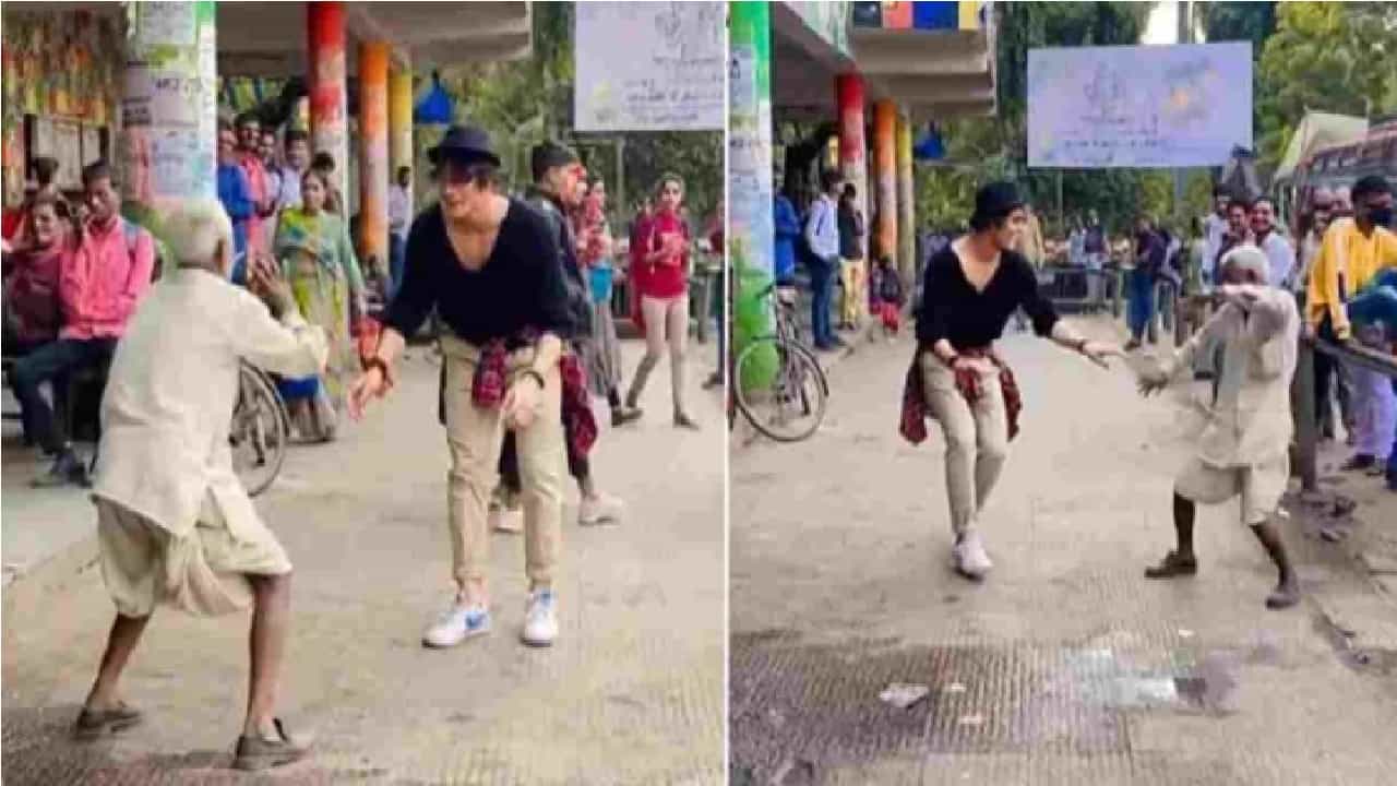 मिळालेल्या माहितीनुसार हा व्हिडीओ कन्टेंट क्रिएटर तरुण याने आपल्या इन्स्टाग्राम अकाऊंटवर शेअर केला आहे. या व्हिडीओमध्ये तरुण एका आजोबांसोबत धमाकेदार डान्स करताना दिसतोय. तर कशाचीही तमा न बळगता फुटपाथवर उभे राहून एक आजोबा तरुणसोबत डान्स करत आहेत. ओ हो जाने जाने या हिंदी गाण्यावर म्हातारे आजोबा आणि तरुणने ठेका धरलाय.
