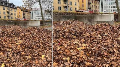 या चित्राकडे बारकाईने पाहिले तर अनेक घरे, कार आणि बॅकग्राऊंडमध्ये एक झाड दिसते. एका ठिकाणी पानांचा ढीग साचलेला असतो.