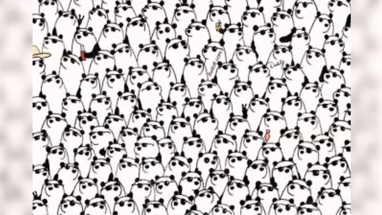 आता वरील चित्र नीट बघा. आता सांगा तुम्हाला सनग्लासेस न घालणारे ते तीन पांडा दिसले का? ते तीन विचित्र पांडा शोधणे आव्हानात्मक आहे.