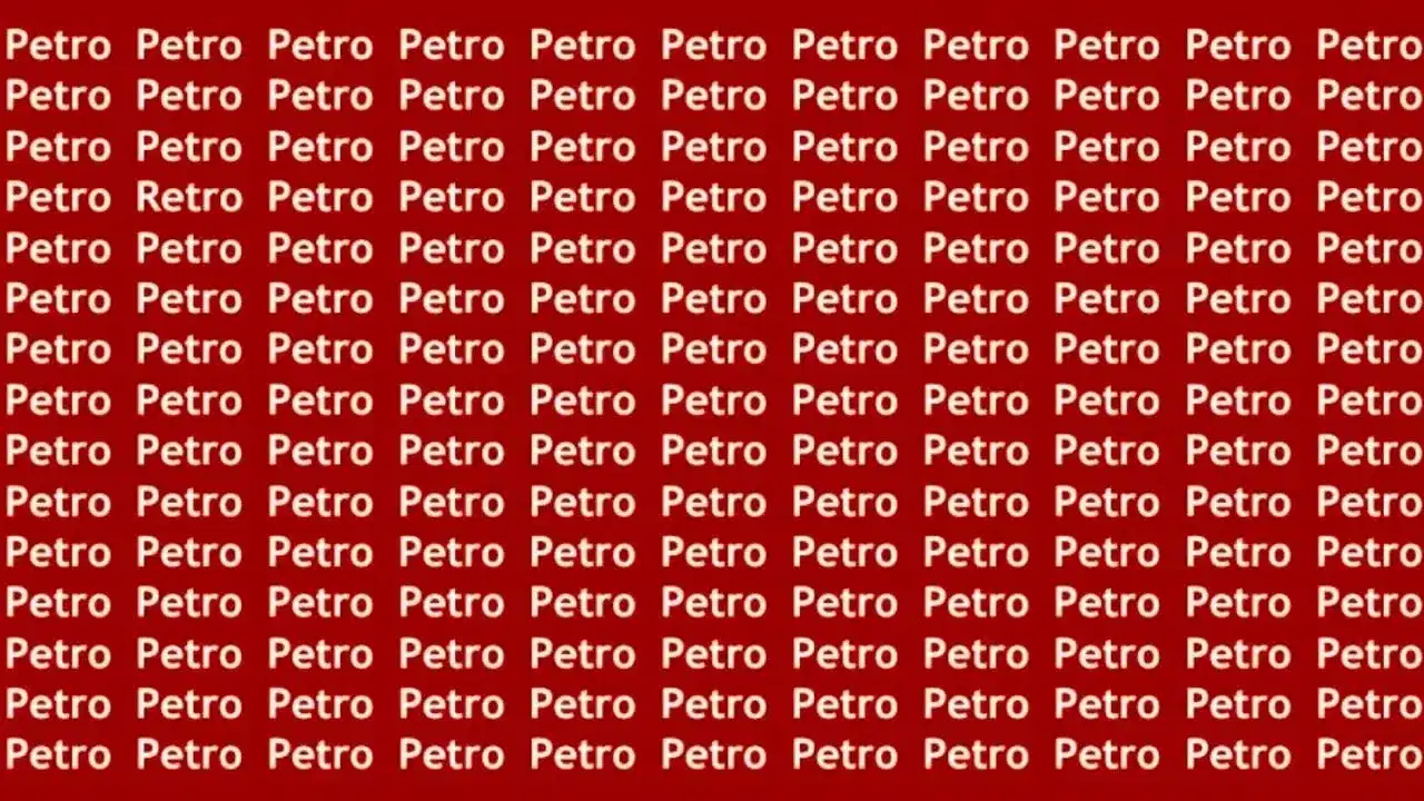 आता हे चित्र बघा, या चित्रात तुम्हाला एक वेगळा शब्द शोधायचा आहे. हे चित्र पाहिलंत तर तुम्हाला Petro हा शब्द दिसेल, यात तुम्हाला Retro शब्द शोधायचा आहे. तुम्हाला हा शब्द सापडला का? ऑप्टिकल इल्युजन मध्ये जेव्हा तुम्हाला असा एखादा शब्द शोधायला सांगितला जातो तेव्हा तुम्हाला एक-एक शब्द बघणं महत्त्वाचं असतं. आता आम्ही सांगतो याचं उत्तर कसं शोधायचं. वरून-खाली, डावीकडून उजवीकडे एक-एक शब्द बघा. आता तरी तुम्हाला हा शब्द दिसलाय का?
