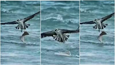 व्हायरल होत असलेल्या व्हिडिओमध्ये तुम्ही पाहू शकता, की एक Osprey समुद्राच्या लाटांशी लढतो आणि एक मोठा मासा अगदी सहजपणे बाहेर काढतो आणि त्याच्या मोठ्या पंखांच्या मदतीनं तो हवेत उडण्याची तयारी करतो. पण या काळात त्याची पकड थोडी कमकुवत होते. मासा थोडासा हलतो आणि तो ऑस्प्रेच्या पकडीतून निसटून पाण्यात पडतो आणि ऑस्प्रे माशाशिवाय तिथून निघून जातो.