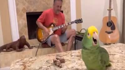 व्हायरल होणाऱ्या या व्हिडीओत एक व्यक्ती गिटार हातात घेऊन वाजवत आहे. त्याचवेळी त्याच्यासमोर बसलेला एक पोपट गिटारच्या धुनवर सूर लावून गाण गाण्याचा प्रयत्न करतोय. हा पोपट क्लासिक रॉक धुनमध्ये गाण्याचा प्रयत्न करताना दिसून येतोय. ‘Tico The Parrot’ असं या प्रसिद्ध पोपटाचं नाव असून @rtnordy या अकाऊंटवरुन हा व्हिडीओ अपलोड करण्यात आला आहे. या