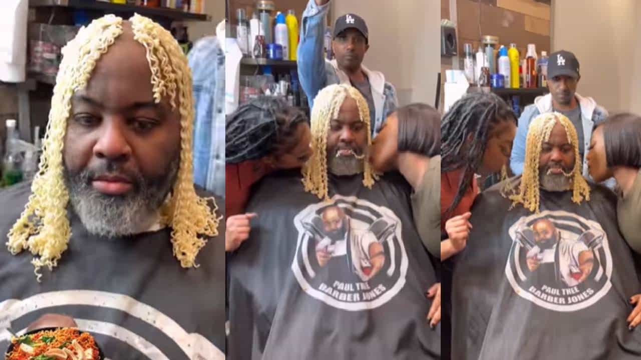 पॉल जोन्स या तरूणाच्या डोक्यावर नूडल्स ठेवण्यात आले आहेत. हे नूडल्स म्हणजेच त्याचे केस आहेत... या नूडल्सला खाण्यासाठी दोन पुढे येतात. वरून एकजण मसाला टाकतोय. हा व्हीडिओ BMR Twins या अकाउंटवरून शेअर करण्यात आला आहे. हा व्हीडिओ सध्या सोशल मीडियावर व्हायरल होतोय.