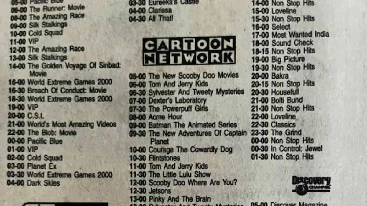 आताच्या पिढीला कदाचित याकडे एक प्रकारचे प्राचीन हस्तलिखित म्हणून पाहिले जाऊ शकते. या शोच्या लिस्टिंगमध्ये ‘टॉम अँड जेरी’, ‘डेक्सटर’, ‘पॉवरपफ गर्ल्स’, ‘स्कूबी डू’ अशा कार्यक्रमांचा समावेश आहे.