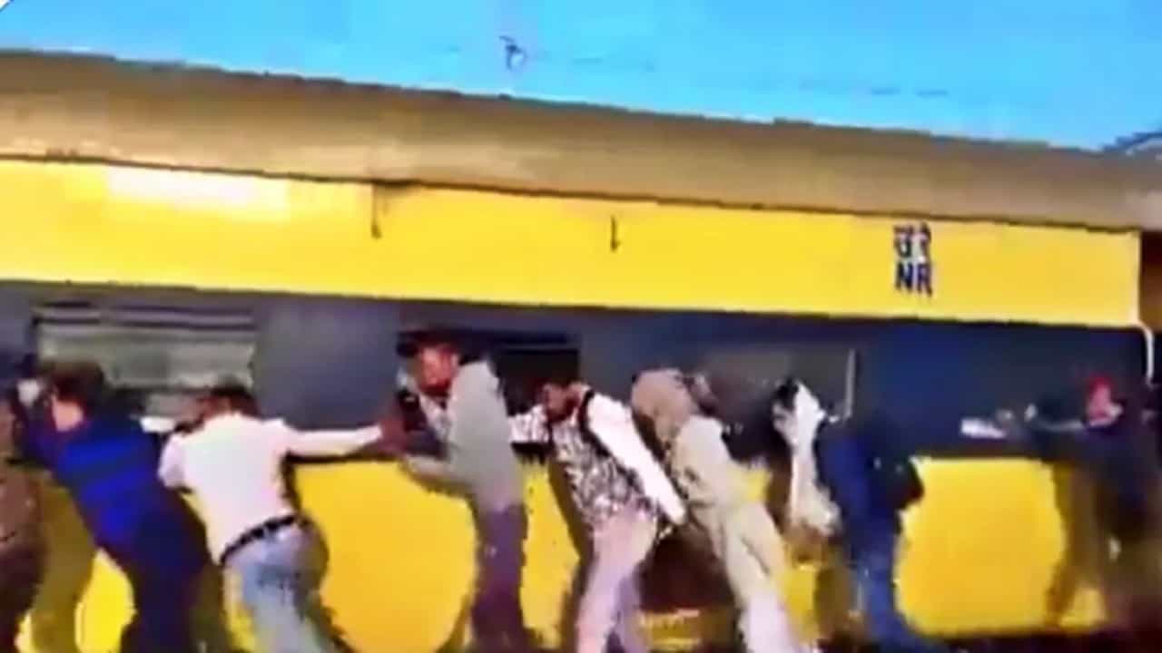 लोकांनी मिळून ट्रेन ढकलली
