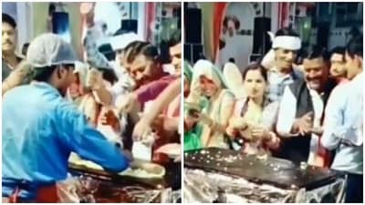 व्हिडीओमध्ये डोसा खाण्यासाठी लोकांनी गर्दी केल्याचे दिसत आहे. समोरची गर्दी पाहून डोसा तयार करणाऱ्या माणसाने एक मोठा डोसा तयार केला आहे. डोसा तयार झाल्यामुळे माणूस तो रोल करुन त्याचे तुकडे करण्याचा प्रयत्न करतोय. मात्र, त्याआधीच गर्दी केलेले लोक डोशावर तुटून पडले आहेत. लोकांनी डोशाचे तुकडे स्वत:च केले आहेत. तसेच डोसा मिळाला म्हणून व्हिडीओतील पाहुण्यांच्या तोंडावर हास्य झळकले आहे. तर लोकांची झुंबड आणि गर्दी पाहून डोसा तयार करणारा माणूस हताश झाला आहे.