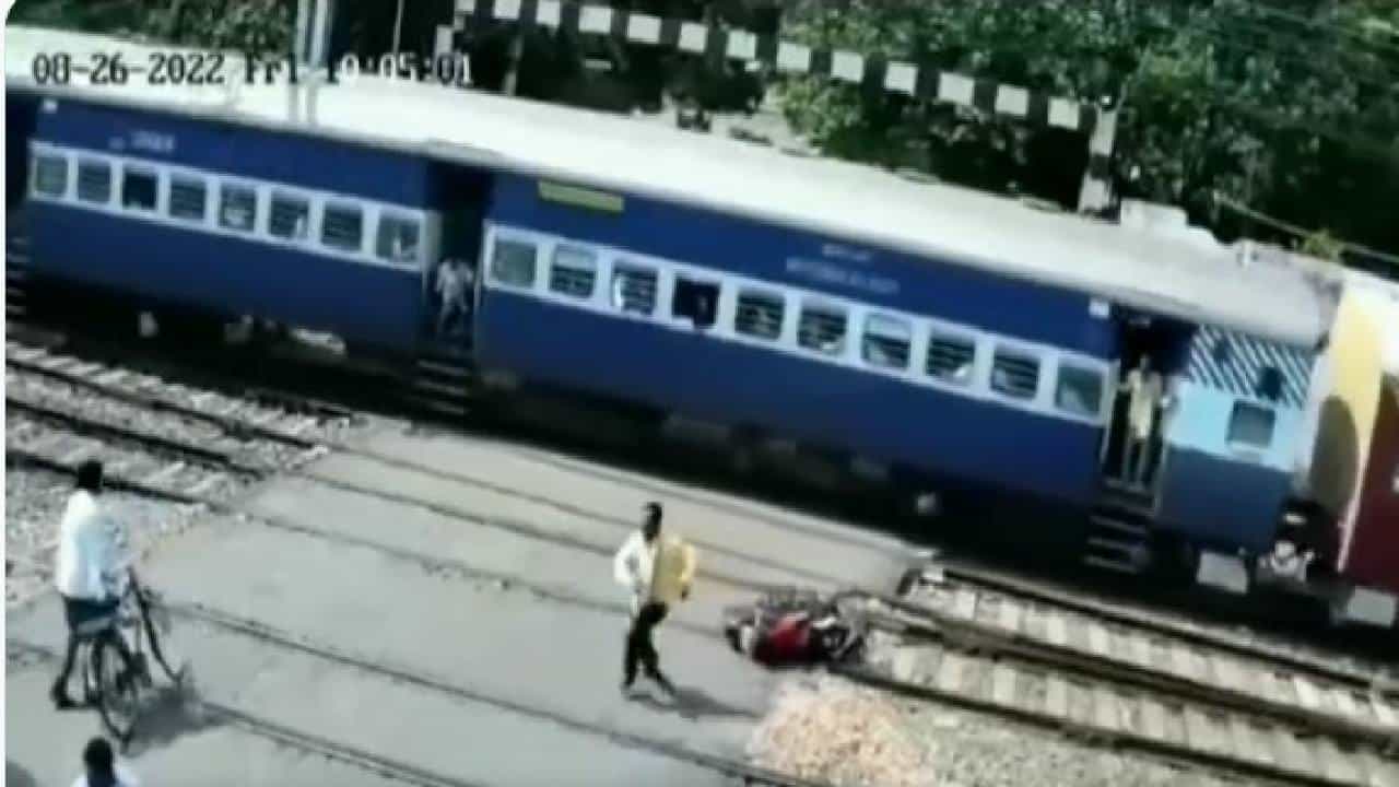 एक नव्हे, दोन नव्हे, तर दहा ते बारा जणांचा ग्रुप रेल्वे रुळावर फाटक ओलांडण्यासाठी चालत चालला होता. एक ट्रेन रुळावर निघून चाललेय आणि हा ग्रुप दुसऱ्या रुळावरून त्या रेल्वेकडे पाहत रूळ ओलांडण्याचा प्रयत्न करतोय. तितक्यातच विरुद्ध दिशेने भरधाव एक्स्प्रेस येते आणि पुढे जो प्रकार घडला, तो पाहून सर्वांच्याच काळजाचा ठोका चुकला. यावेळी एका व्यक्तीच्या जिवावरचे संकट त्याच्या ‘बाईक’वर बेतले.