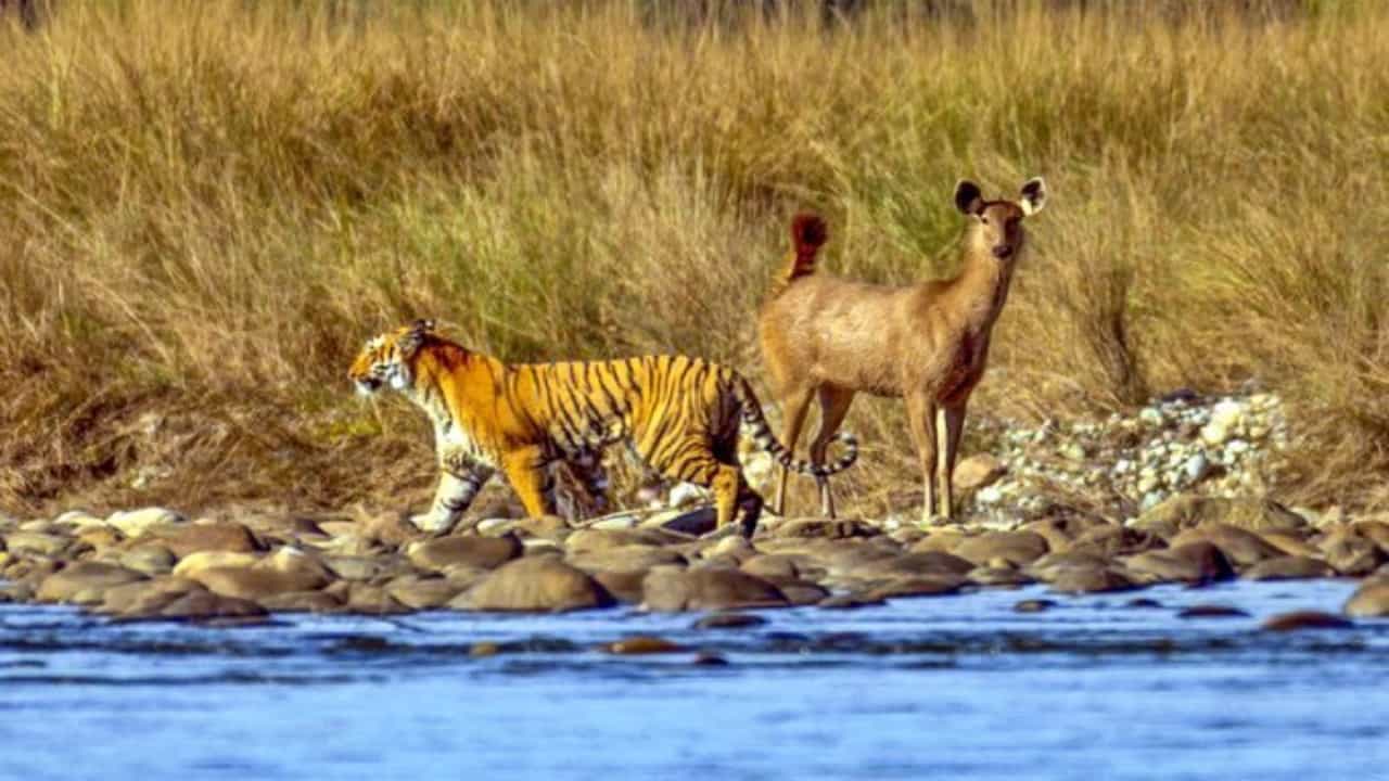Animals Photo : इंटरनेटच्या जगात कधी, कुठे, काय व्हायरल होईल, हे आपण सांगू शकत नाहीत. सध्या इंटरनेटवर (Social media) एका फोटोने सर्वांनाच आश्चर्यचकित केले आहे. हा फोटो हरीण (Deer) आणि वाघाशी (Tiger) संबंधित आहे. या फोटोने जगभरातील लोकांचे लक्ष वेधून घेतले आहे. IFS अधिकारी रमेश पांडे देखील हा फोटो पाहून इतके प्रभावित झाले, की ते त्यांच्या अधिकृत ट्विटर अकाउंटवर शेअर केल्याशिवाय राहू शकले नाहीत. आता तुम्ही विचार करत असाल, की या चित्रात इतके खास काय आहे, की त्याने जगभरातील लोकांचे लक्ष वेधून घेतले आहे आणि इंटरनेटवर खळबळ उडवून दिली आहे. वाघ किती धोकादायक असतो हे आपल्या सर्वांना माहीत आहे. तो एका झटक्यात आपली शिकार फाडून टाकतो. वाघाला पाहताच मोठ-मोठे प्राणीही पळून जातात. त्यामुळे मग जवळ येण्याचा प्रश्नच उद्भवत नाही.