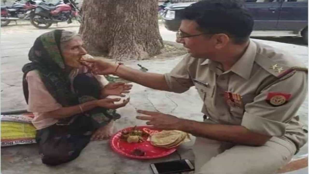खाकी वर्दीचे असेही रूप, म्हाताऱ्या महिलेला प्रेमाने भरवला घास, फोटो व्हायरल