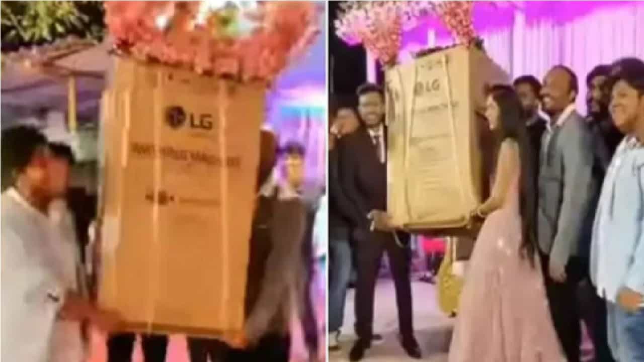 व्हायरल होत असलेला व्हिडीओ नेमका कुठला आहे याची निश्चित माहिती मिळू शकलेली नाही. मात्र हा व्हिडीओ अतिशय मजेदार आहे हे मात्र नक्की. या व्हिडीओमध्ये लग्नमंडपात नवरी आणि नवरदेव उभे आहेत. तर नवरदेवाचे मित्र या दोघांकडे एक मोठा बॉक्स घेऊन आले आहेत. या बॉक्समध्ये अतिशय आगळंवेगळं गिफ्ट असावं असं सुरुवातीला सगळ्यांनाच वाटतं. मात्र खरं पाहता या मोठ्या बॉक्समध्ये काहीतरी वेगळेच ठेवण्यात आल्याचं व्हिडीओमध्ये दिसते आहे. या व्हिडीओने सोशल मीडियावर धम्माल उडवून दिली आहे.