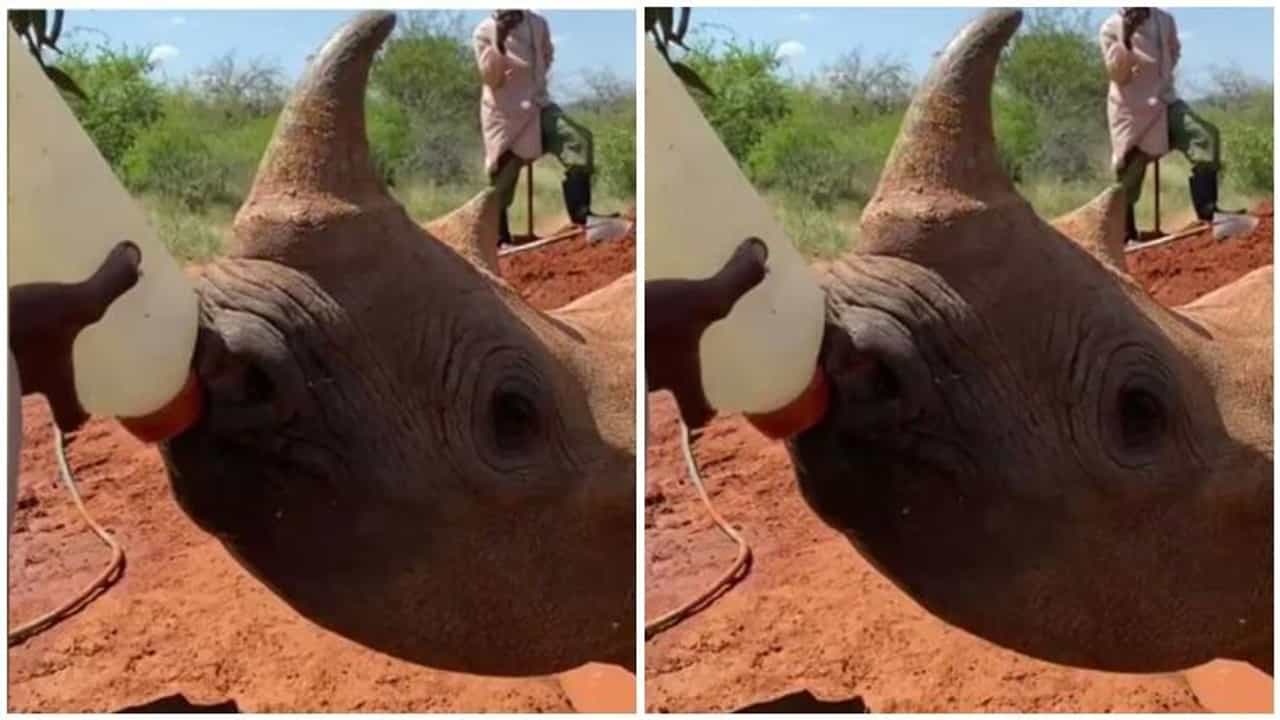 (rhino drinking milk and taking mud therapy video went viral on social media)