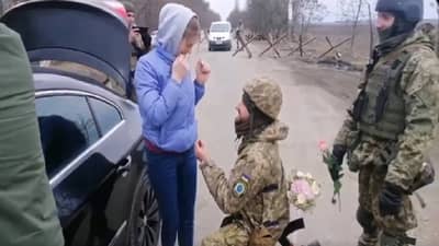 मुंबई : रशिया आणि युक्रेनमध्ये (Russia Ukrain War) सध्या घमासान युद्ध सुरू आहे. रोज हजारो सैनिक मारले गेल्याचा दावा दोन्ही देशांकडून करण्यात येतोय. गेल्या तेरा दिवसांपासून हे युद्ध सुरू आहे. दोन आठवडे तरी युक्रेन अजूनही झुकलेला नाही. युक्रेनचे सैनिक जीवाची बाजी लावून रशियाविरोधात जोमाने खिंड लढवत आहेत. सततच्या युद्धाने युक्रेन बेरिचारख झाला आहे. अनेक ठिकाणी पडक्या इमारती, जळालेल्या गाड्या, लहानग्यांचा आक्रोश, धुराचे लोट अशी परिस्थिती सध्या युक्रेनमध्ये आहे. मात्र या युद्धाच्या भूमिवरही प्रेमाचे गुलाब फुलले (Ukraine war Propose) आहे. सध्या या युद्धातला एक व्हिडिओ प्रचंड (Viral Video) व्हायरल होत आहे. आणि लोकंच्या चेहऱ्यावर स्माईल आणत आहे. कारण रशियापुढे गुडघे न टेकलेला हा सैनिक एका तरुणीला गुडघ्यावर बसून प्रपोज करताना दिसतोय. त्यामुळे हा अनोखा व्हिडिओ लोकांना आवडतोय. त्यामुळे नेटिझन्सनीही या जोडप्याला शुभेच्छा दिल्या.