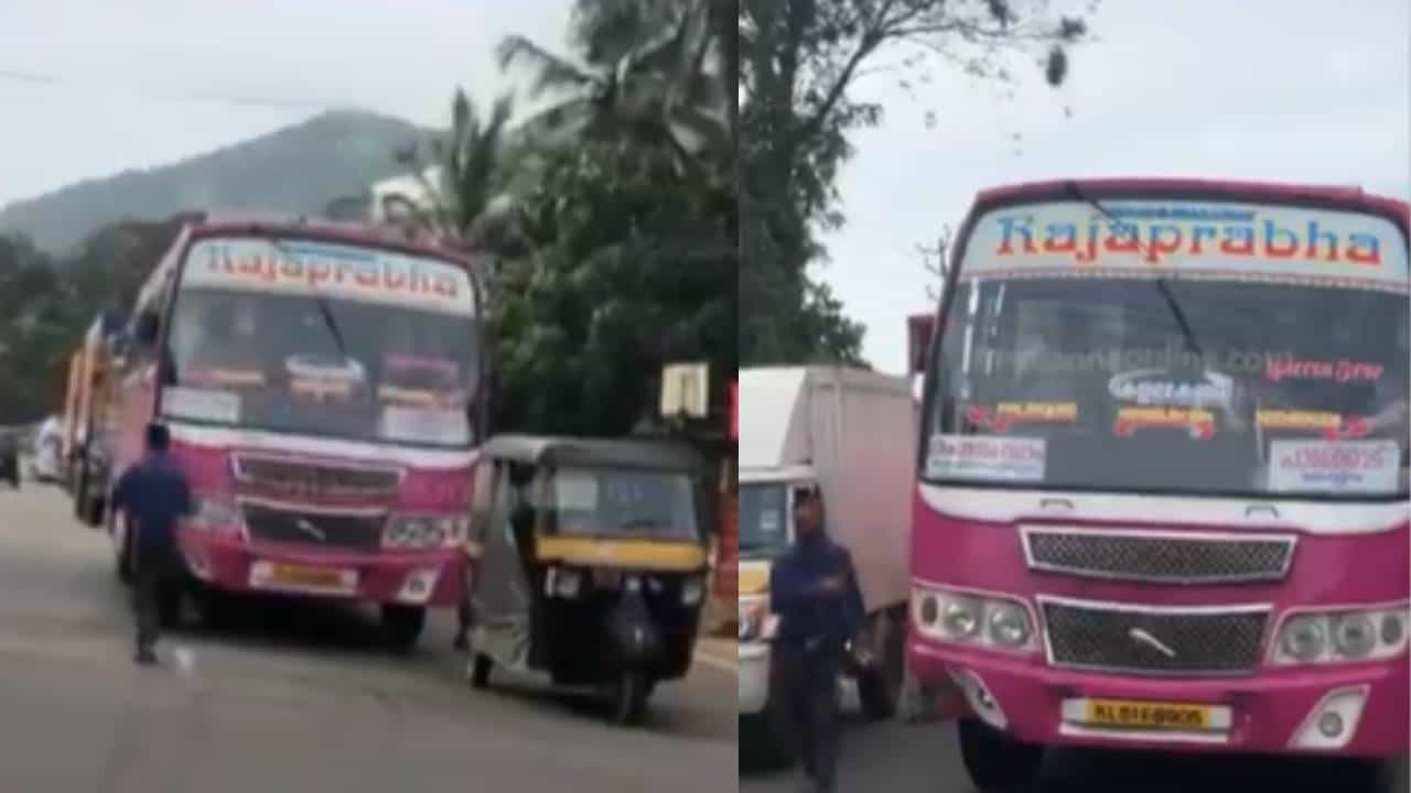 केरळच्या मलप्पुरममध्ये एका शाळेच्या मुख्याध्यापकांनी आपल्या शाळेजवळ बस थांबत नसल्याच्या अनेक तक्रारी आल्यानंतर एका खासगी बससमोर उभे राहण्याचा निर्णय घेतला.