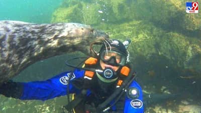 समुद्री प्राण्यांनाही माणसासारख्या भावना असतात. ते आपल्याप्रमाणेच त्यांच्या भावना शेअर करतात. सोशल मीडियावर व्हायरल झालेल्या या व्हिडिओमध्ये असंच दिसतं आहे. व्हिडिओमध्ये, स्कूबा डायव्हरला खूप प्रेमाने मिठी मारताना कॅमेऱ्यात सील पकडला गेला. हा व्हिडिओ सोशल मीडिया युजर्सची मनं जिंकत आहे. व्हिडिओमध्ये, सील स्कुबा डायव्हरजवळ पोहत आहे. मग ती त्याला मिठी मारू लागते. हा अतिशय सुंदर क्षण स्कुबा डायव्हर बेन बुरविले यांनी स्वतः त्याच्या कॅमेऱ्यात टिपला आहे. (Seal Hugging Scuba Diver in the sea goes viral on social media will melt your hearts)