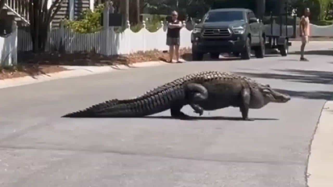 मुंबई : दक्षिण कैरोलिना (South Carolina) या देशात एक प्राणी रस्त्यावर फिरताना दिसला आहे. घड़ियालच्या किआवाह द्वीप (Kiawah Island) इथं रस्ता ओलांडताना मगर दिसली आहे. एका व्यक्तीने हा व्हिडीओ पाहिल्यानंतर ‘याला पाहा हा तर डायनासोर आहे’ असं म्हटलं आहे. विशेष म्हणजे असे प्राणी आता रस्त्याने फिरताना दिसू लागले आहेत. त्याचबरोबर असे व्हिडीओ देखील लोकांना अधिक पाहायला आवडतात असं दिसतंय. टेरेसा फिक्का यांच्याकडून इंस्टाग्रामवरती (Instagram) हा व्हिडीओ व्हायरल करण्यात आला आहे. विशेष म्हणजे एक मोठी मगर रस्ता ओलांडत आहे. ज्यावेळी ती मगर रस्त्याच्या दुसऱ्या बाजूला पोहोचते, त्यावेळी ती तिथं आराम करताना दिसत आहे असं एका वेबसाईटने म्हटलं आहे.