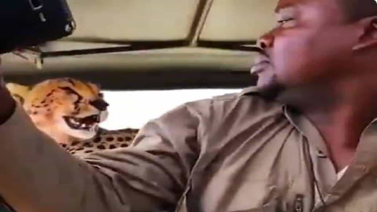 व्हायरल झालेल्या या व्हिडीओमध्ये एक सफारी जीप जंगलात उभी आहे. पर्यटकांनी भरलेली सफारी जीपच्या दिशेने चित्ता येत असल्याचे दिसते. पुढे व्हिडीओमध्ये तुम्हाला दिसेल की, चित्ता उडी मारून जीपच्या छतावर बसतो. या दरम्यान, चित्ता देखील सन रूफवरून आत डोकावण्याचा प्रयत्न करतो आणि नंतर अलगदपणे आणि एका बाजूला बसतो. दरम्यान, जीपमध्ये बसलेले सर्व पर्यटक घाबरतात, परंतु सफारी मार्गदर्शकांपैकी एक आपल्या जागेवरून उठतो आणि चित्यासोबत सेल्फी घेण्यास सुरुवात करतो.