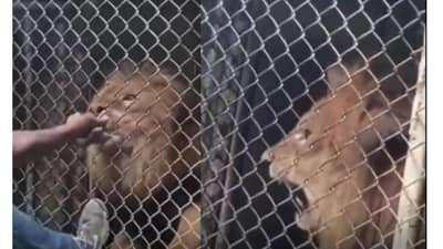 व्हिडिओमध्ये तुम्ही पाहू शकता की, माणूस कसा सिंहाच्या तोंडातून हात काढण्याचा प्रयत्न करत आहे, पण सिंह तिथून जायला तयार नव्हता. मोठ्या कष्टाने त्या माणसाने त्याच्या तावडीतून आपला जीव वाचवला. सुदैवाने सिंहाने फक्त त्याचं बोट पकडलं होतं, नाहीतर तो समोर असता तर त्याने त्या माणसालाच फाडून खाल्लं असतं.