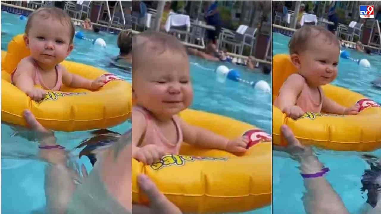 व्हायरल झालेल्या व्हिडिओमध्ये एक लहान मुलगी तिच्या आईसोबत स्विमिंग पूलमध्ये दिसत आहे. मुलगी ट्यूबमध्ये बसलेली दिसत आहे, तर तिच्या आईने तिला पकडले आहे.