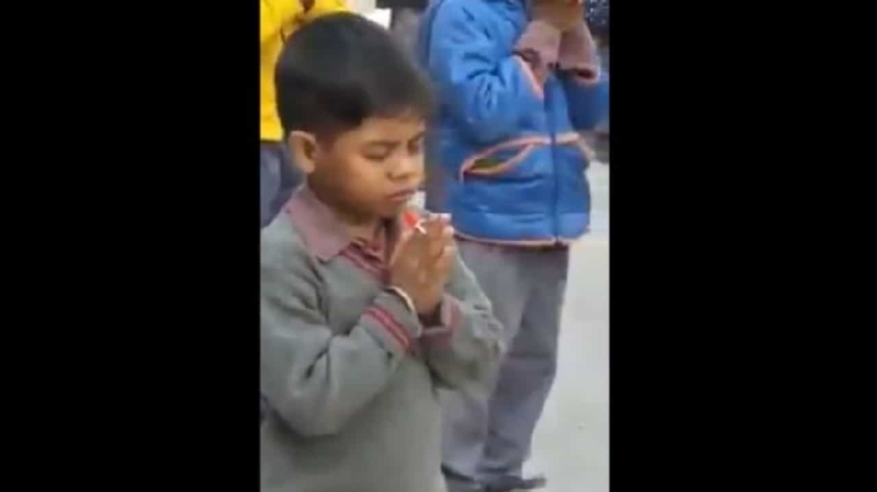 (small boy eating lollipop in ongoing school prayer video goes viral)