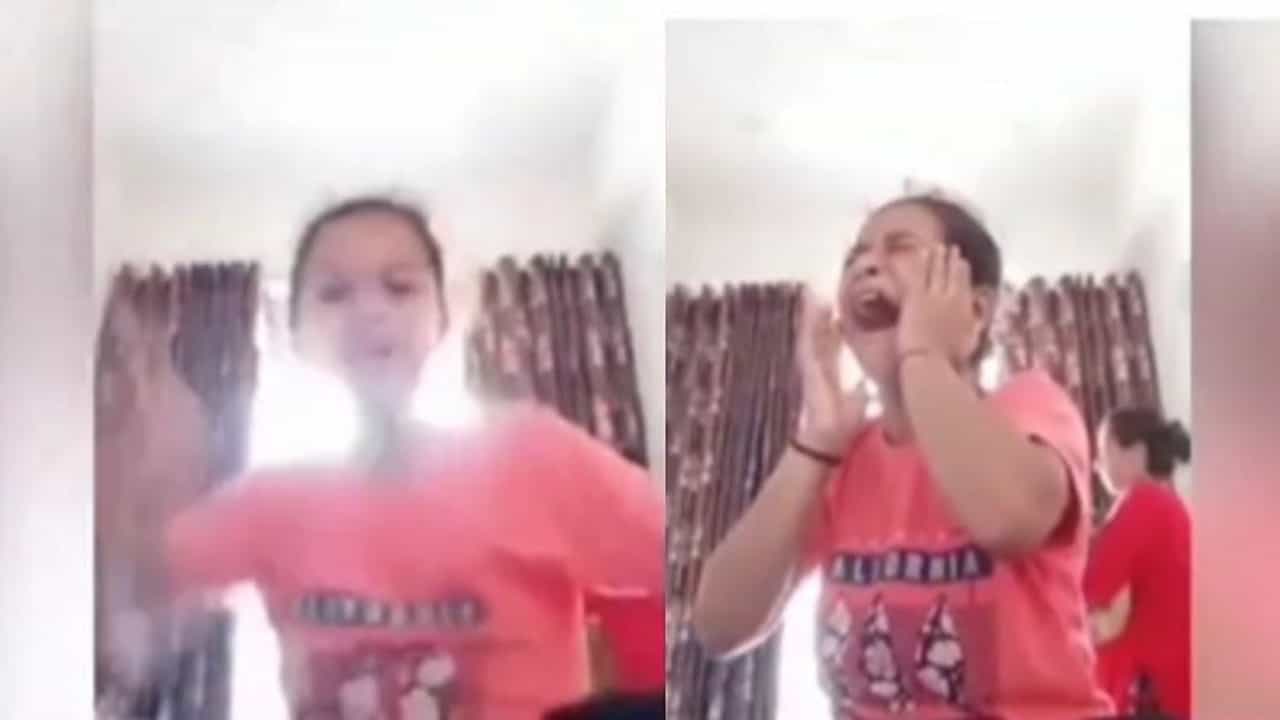 मात्र, यावेळी व्हिडीओतील छोट्या मुलीची आई मध्ये आली आहे. अभ्यास सोडून मोबाईलमध्ये वेळ घालवत असल्यामुळे व्हिडीओतील मुलीवर तिची आई चांगलीच चिडली आहे. छोटी मुलगी हावभाव करण्यात मग्न असताना तिच्या आईने तिच्या थेट कानशिलात लगावली आहे. गालावर जोरदार प्रसाद मिळाल्यामुळे मुलगी थेट रडायला लागली आहे.
