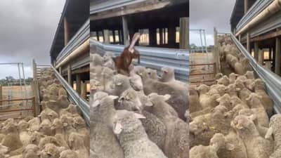 व्हायरल व्हिडीओमध्ये काही मेंढ्या एका गल्लीत रांगेत बसलेल्या दिसत आहेत, त्यामुळे संपूर्ण मार्ग बंद झालाय. येण्या-जाण्यासाठी जागा नाही. इतक्यात त्यांच्यावर पाळत ठेवणारा कुत्रा मेंढ्यांच्या वरून पटकन पळत जातो.
