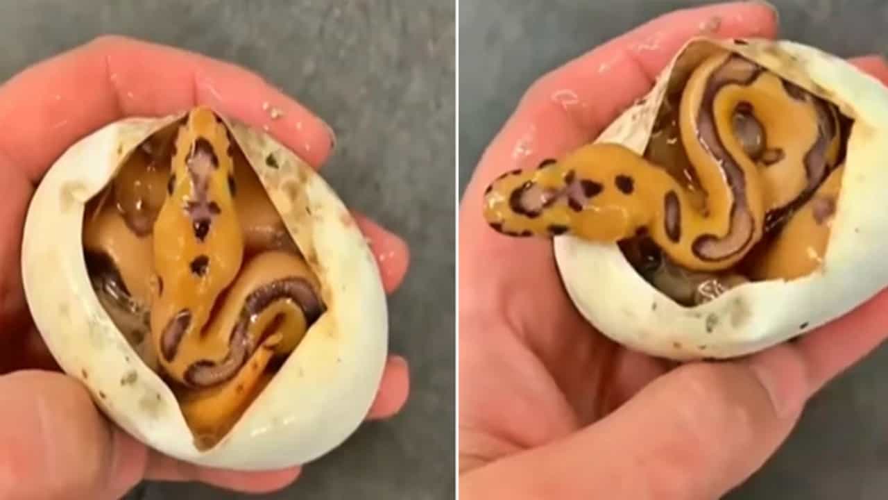व्हिडिओमध्ये तुम्ही पाहू शकता, की एका व्यक्तीने हातात पिवळ्या सापाचे अंडे धरले आहे. या अंड्याच्या आत हे पिल्लू विकसित झाले आहे. व्हिडिओमध्ये साप अंडी फाडून बाहेर येण्याचा प्रयत्न करत असल्याचे तुम्ही पाहू शकता. अंड्यातून बाहेरील जगाकडे पाहत असलेला एक छोटा पिवळा साप दिसतो. मात्र, दोन वेळा तोंड बाहेर काढल्यानंतर तो पुन्हा अंड्याच्या आत जाताना दिसतो. आता व्हिडिओ पाहू या…