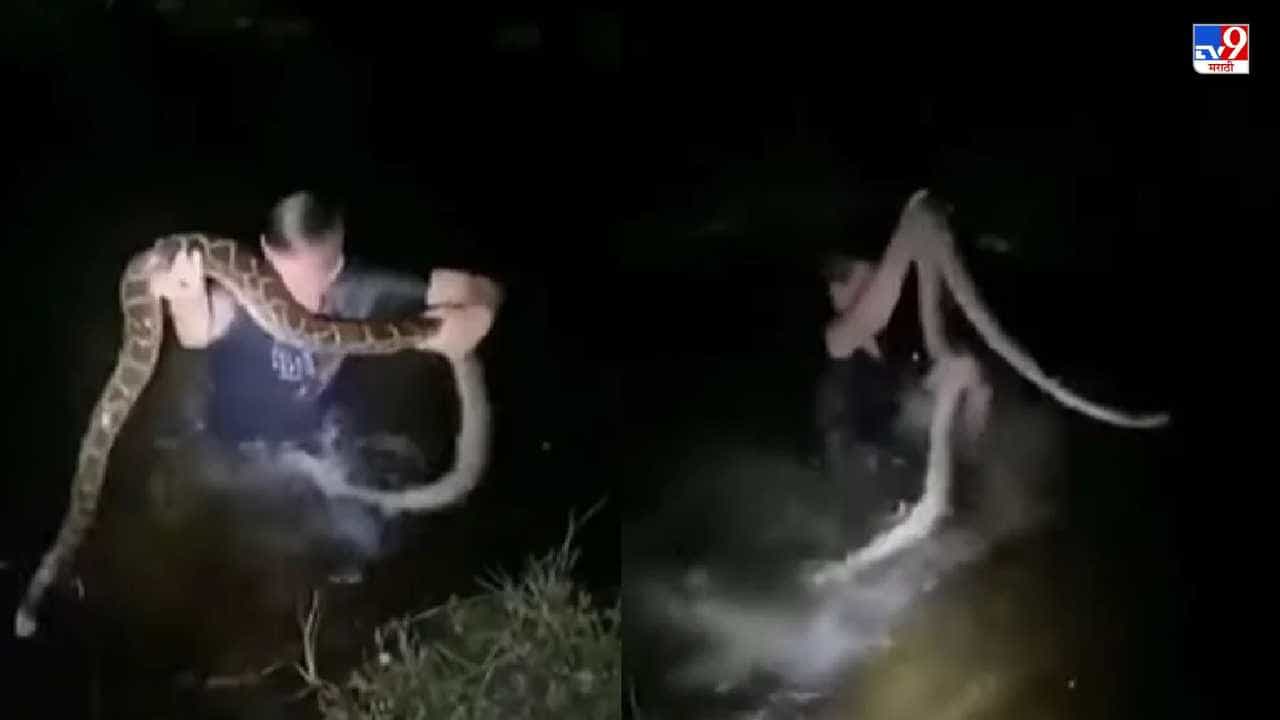 व्हायरल व्हिडिओ क्लिपच्या सुरुवातीला एक अजगर नदीत वेगाने जाताना दिसत आहे. हा व्हिडिओ रात्रीच्या वेळी शूट करण्यात आला आहे. व्हिडिओमध्ये दिसत आहे की, साप टॉर्चच्या प्रकाशाखाली जात असल्याचे चित्रित करण्यात आले आहे. पण पुढच्याच क्षणी जे काही घडते ते धक्कादायक असते. साप नदीत शिरताच एका मुलानेही त्यात उडी मारली. यानंतर हा मुलगा अजगराला पटकन पकडून बाहेर येताना दिसत आहे.