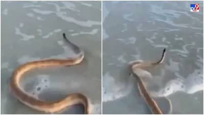 व्हायरल होत असलेल्या व्हिडिओमध्ये एक मोठा साप समुद्राच्या लाटांकडे जाताना दिसत आहे, पण लाटा त्याला मागे ढकलतात. पण साप माघार घेण्याऐवजी हिंमतींने लाटांकडे सरकू लागतो, तेवढ्यात कुणीतरी हा सुंदर व्हिडिओ कॅमेऱ्यात कैद केला. जो सध्या सोशल मीडियावर मोठ्या प्रमाणात व्हायरल होत आहे.