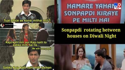 सोन पापडीचा बॉक्स अनेकदा फिरुन फिरुन आपल्याकडेच येतो, काहीजण आपल्याला सोन पापडीचा बॉक्स पाहून लगेच तो दुसऱ्यांना गिफ्ट करतात. याच गोष्टींवर नेटकऱ्यांनी आपली कल्पकता वापरली आहे. ज्यात वेलकम सिनेमातील रोटेशन गेमचा सीन दाखवण्यात आला आहे. एकाने तर दिवाळीसाठी सोनपापडी भाड्याने मिळेल अशीही जाहिरात केलेली इथं दिसते आहे. चला तर हे मजेदार मिम्स पाहुया…