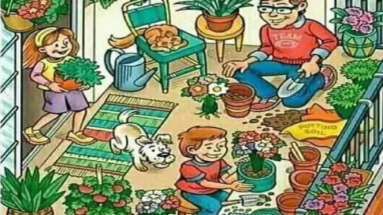 व्हायरल फोटोमध्ये तुम्ही पाहू शकता की, एक माणूस लहान मुलांसोबत बाल्कनीमध्ये भांड्यांमध्ये रोपं लावताना दिसत आहे. चित्रात पाळीव प्राणीही दिसत आहेत. पण कलाकाराने चतुराईने या चित्रात कुठेतरी केळं लपवलं आहे. जर तुमची दृष्टी गरुडासारखी तीक्ष्ण असेल, तर हे आव्हान तुमच्यासारख्या लोकांसाठी आहे. मग उशीर का? केळी शोधा.