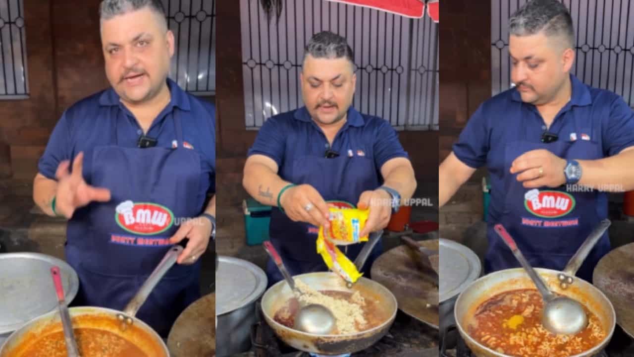 व्हायरल क्लिपमध्ये एक स्ट्रीट फूड विक्रेता मॅगीची 400 रुपयांची प्लेट सर्व्ह करताना दिसत आहे. हे पाहून फूड ब्लॉगर आश्चर्यचकित झाला आहे. मग तो विचारतो – ‘400 ची मॅगी, त्यात सोनं घालतोस का?’ विक्रेत्याच्या म्हणण्यानुसार, त्याने मटन करीमध्ये मॅगी मिसळली आहे, ज्यामुळे चव चांगली होते आणि किंमत वाढते. व्हिडिओमध्ये तुम्ही पाहू शकता की, विक्रेता मटणासोबत मॅगी सर्व्ह करतो.