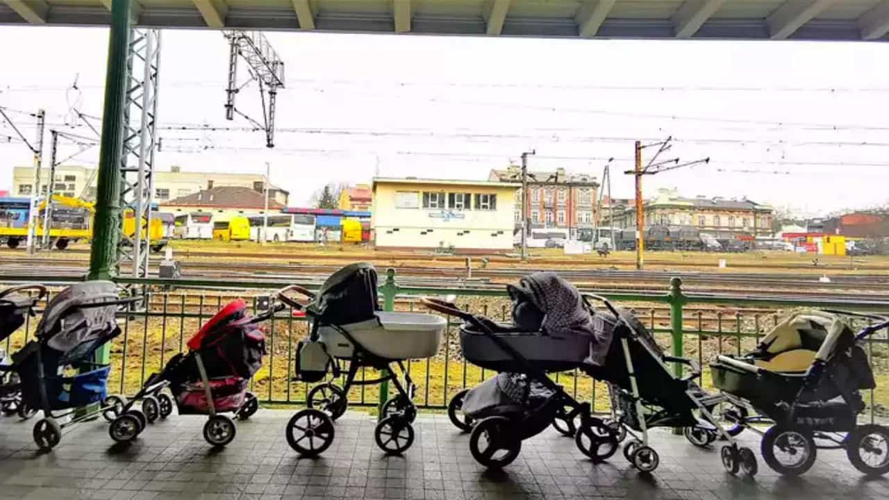 Surreal : पोलंडमधील (Poland) रेल्वे प्लॅटफॉर्मवर रिकाम्या स्ट्रोलर्सचे फोटो व्हायरल (Strollers in Poland) झाले आहेत. हे फोटो हृदयाला स्पर्श करणारे आहेत. छायाचित्रकार फ्रान्सिस्को मालावोल्टा यांनी पोलंडमधील प्रझेमिसल (Przemysl) रेल्वे स्थानकावर हे फोटो काढले.