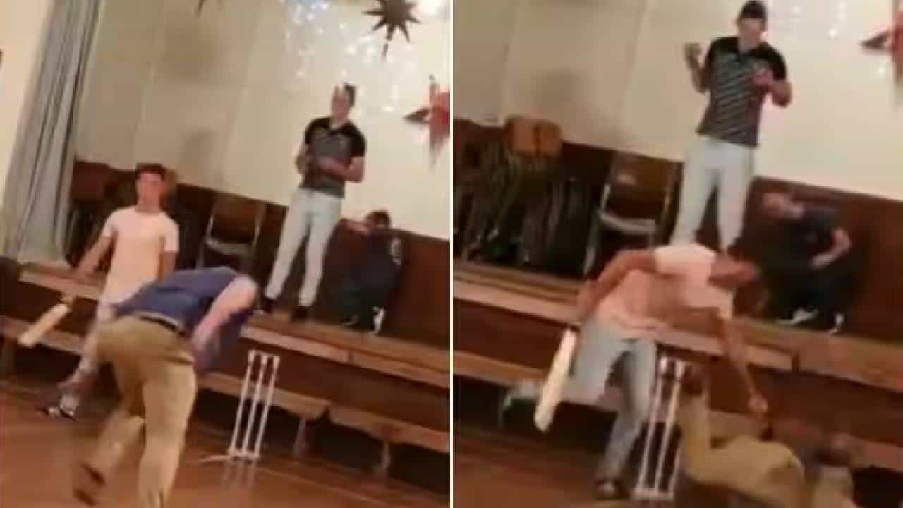 Video | शाळेत क्रिकेट खेळताना विद्यार्थ्याचा तोल गेला, मग सरळ जाऊन विकेटवर…