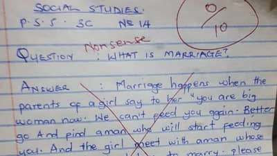 पण त्याने आपल्या डोक्याचा उपयोग लग्नाची एक विचित्र व्याख्या लिहिण्यासाठी केला. मात्र, यामुळे शिक्षक अधिकच संतापले आणि त्यांनी विद्यार्थ्याला शून्य गुण दिले.