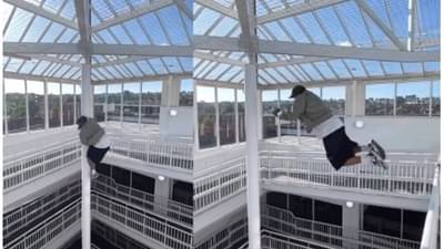 इन्स्टावरील @parkour_tribe पेजवर हा व्हिडिओ शेअर करण्यात आला आहे. युजरने कॅप्शन दिले आहे की, या व्यक्तीने स्लाइडिंगमध्ये पूर्णवेळ नोकरी सुरू करावी. या व्हिडिओतील व्यक्तीचे नाव जो स्कँड्रेट असे असून तो दररोज आपल्या इन्स्टा हँडलवर असेच स्लाइडिंग व्हिडिओ अपलोड करतो @joescandrett. स्क्रॅन्डमच्या या व्हिडिओला 2600 हून अधिक लाइक्स मिळाले असले तरी इंटरनेटच्या जनतेला त्याचा स्टंट मूर्खपणा वाटला. लोक म्हणतात की हा स्टंट नाही, तर मूर्खपणाची पराकाष्ठा आहे.