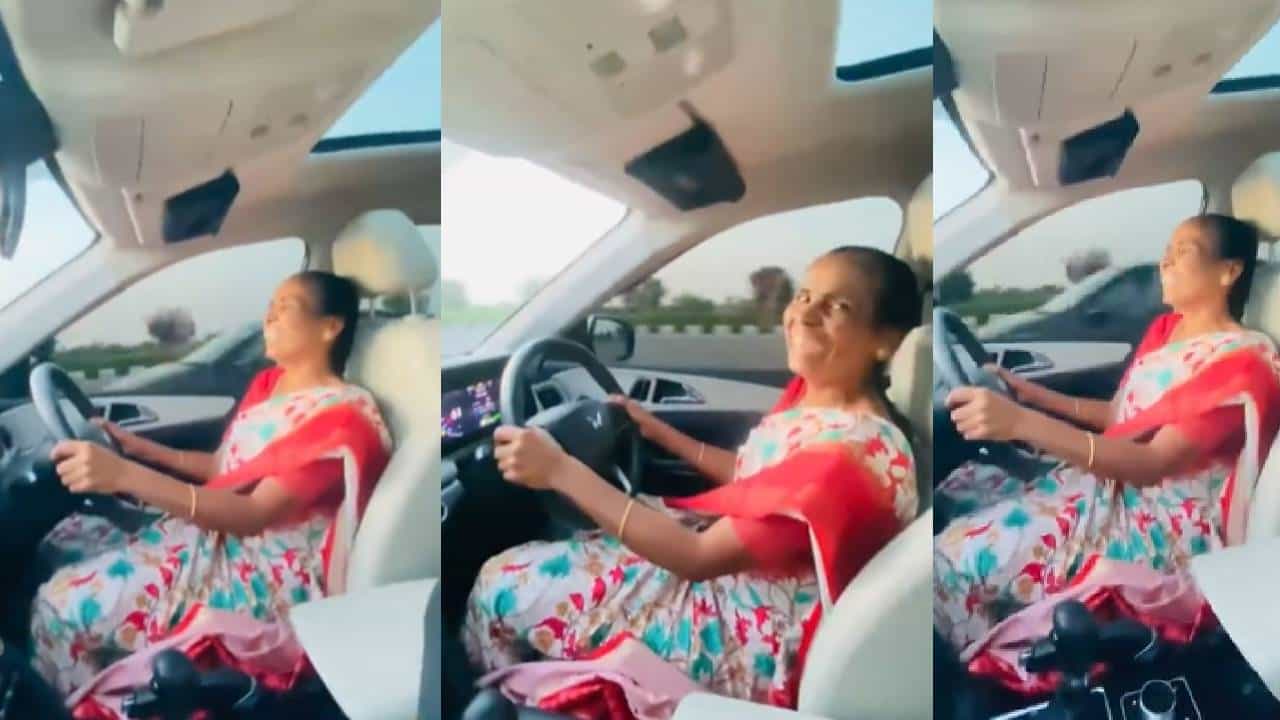 मुलगा आपल्या आईशी बोलत असून आई साध्या साडीत गाडी चालवत आहे. रस्त्यावरून गाडी चालवत असताना तिच्या जवळून अनेक वाहने गेली, पण जणू काही त्या महिलेला गाडी चालवण्याचा अनेक वर्षांचा अनुभव आहे, असे वाटत होते.