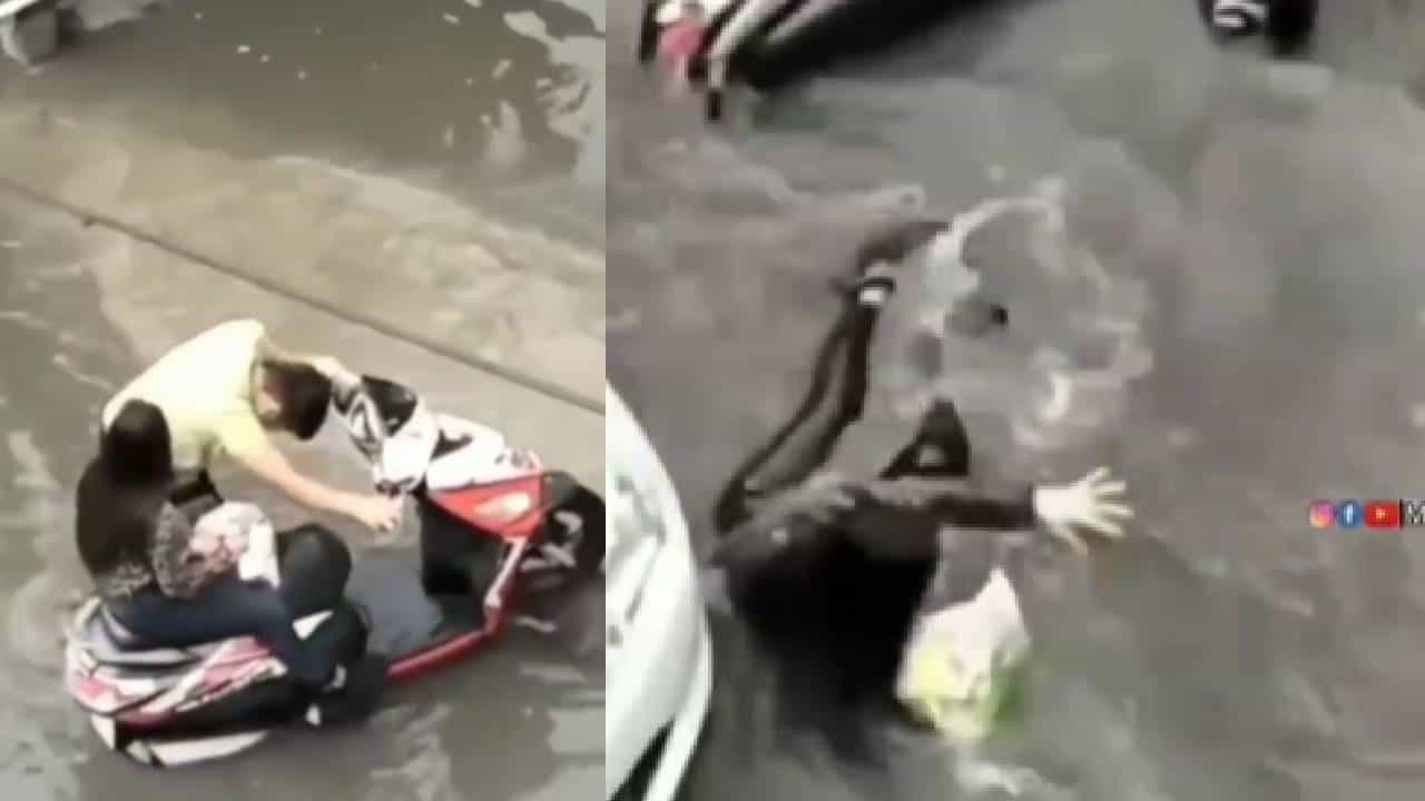 पावसाळ्यात मजेदार किस्से घडतात आणि ते व्हायरल होतात. कुणी पाण्यातच काय पडतंय, कुणी घसरून काय पडतंय. एकसे बढकर एक किस्से!