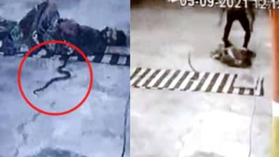 हे प्रकरण राजस्थानच्या बांसवाडाच्या मंदारेश्वर महादेव मंदिर परिसरातील आहे. ही घटना मंदिरात रात्री बाराच्या सुमारास घडली. याचा पुरावा म्हणजे सीसीटीव्हीमध्ये रेकॉर्ड केलेली ही क्लिप, जी आता मोठ्या प्रमाणात व्हायरल होत आहे. या व्यक्तीचे नाव जय उपाध्याय असं सांगितले जात आहे, जो काही दिवसांपासून मंदिरात झोपत होता, मीडिया रिपोर्टनुसार, जेव्हा जयला कळले की, त्याच्या चादरीमध्ये साप आहे, तेव्हा त्याच्या पायाखालची जमीनच सरकली