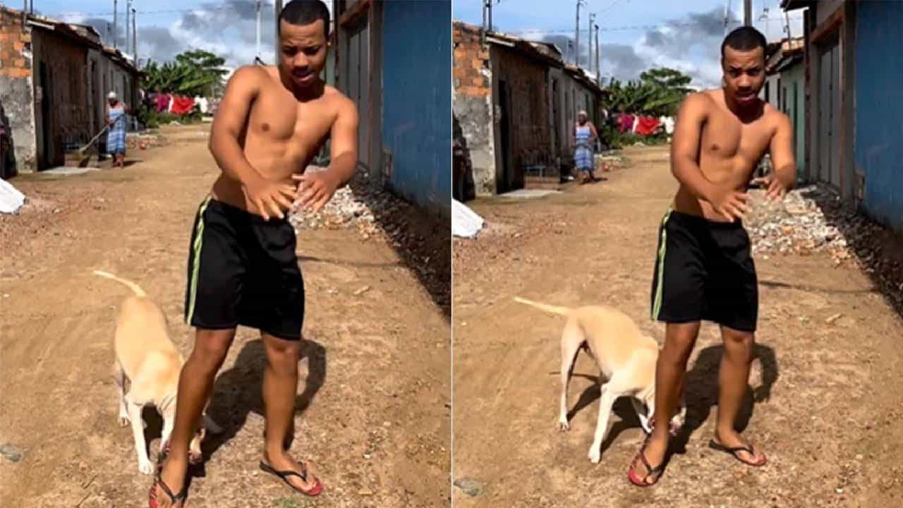 व्हिडीओमध्ये रिनाल्डो सोरेस हा एका गल्लीत उभा आहे. तो गल्लीत उभा राहून डान्स करीत आहे. त्या व्हिडिओत तुम्ही पुढे जाऊन पाहिलं तर,त्यामध्ये तुम्हाला एक कुत्रा देखील दिसत आहे. तो कुत्रा त्या व्यक्तीचा पाय चावत आहे. विशेष म्हणजे रिनाल्डो सोरेस कुत्र्याच्या चावण्याकडे अजिबात लक्ष देत नाही. तर तो स्वत:च्या परफॉर्मेंसकडे अधिक लक्ष देत आहे.