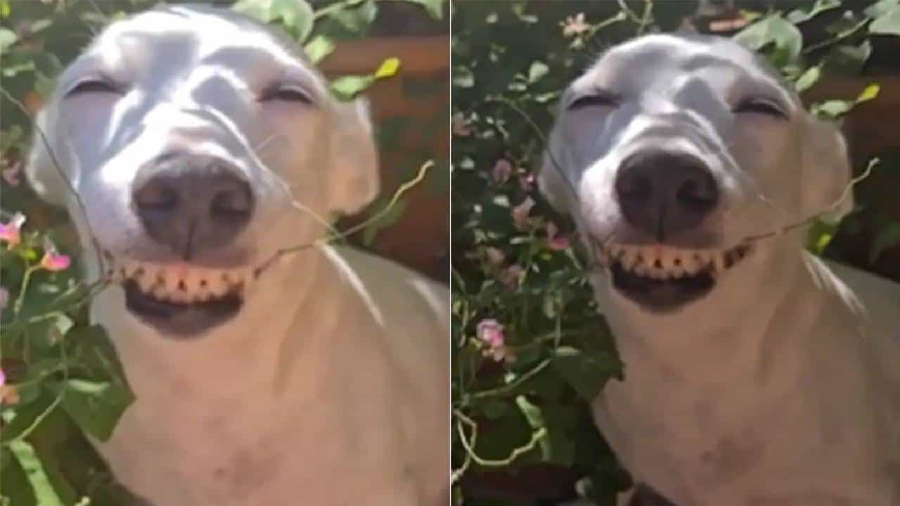 हा व्हिडीओ Reddit यांनी शेअर केला आहे. व्हिडीओच्या सुरुवातीला एक कुत्रा आपले दात बाहेर काढतं आहे. त्यानंतर कॅमेरा समोर आल्यानंतर हसत आहे. त्या व्हिडीओला त्या कुत्र्याने अधिक मजेशीर सु्द्धा केले आहे. त्या कुत्र्याने एक छोटी काठी पकडली. त्या काठीला तो दाताने दाबत आहे.